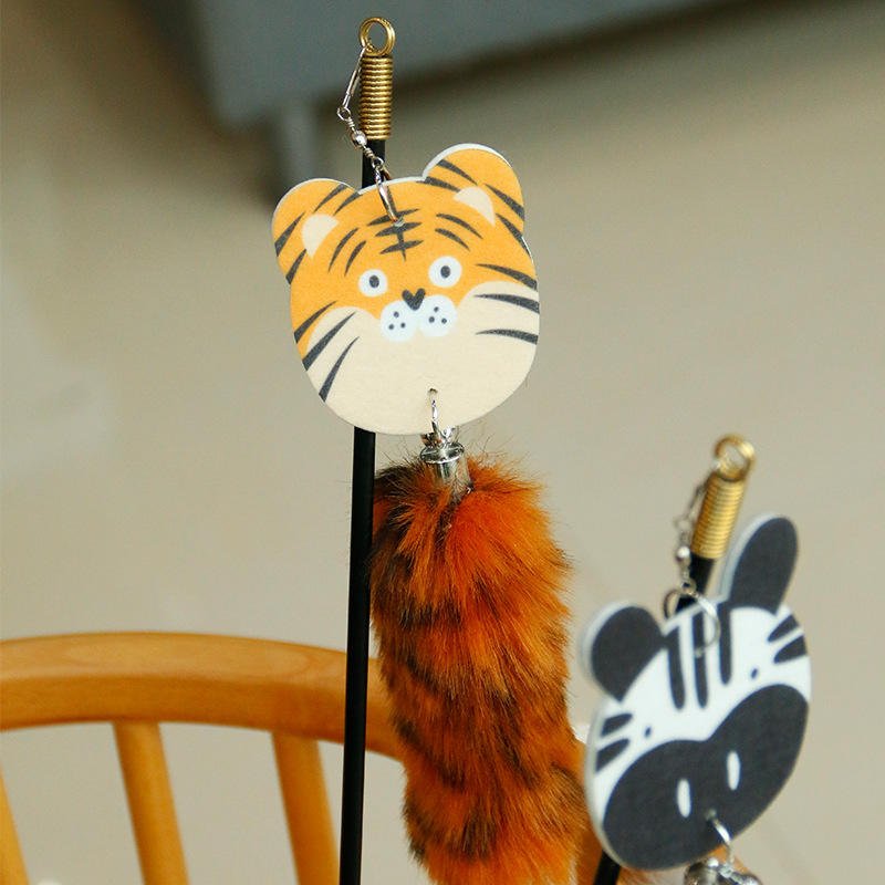 SUMUFI Cat Toys Simulation Tiger Tail Teaser Stick With Bell Kitten Chaser Wand Interactive Pet Plush Cat Toy Cat Teaser Stick